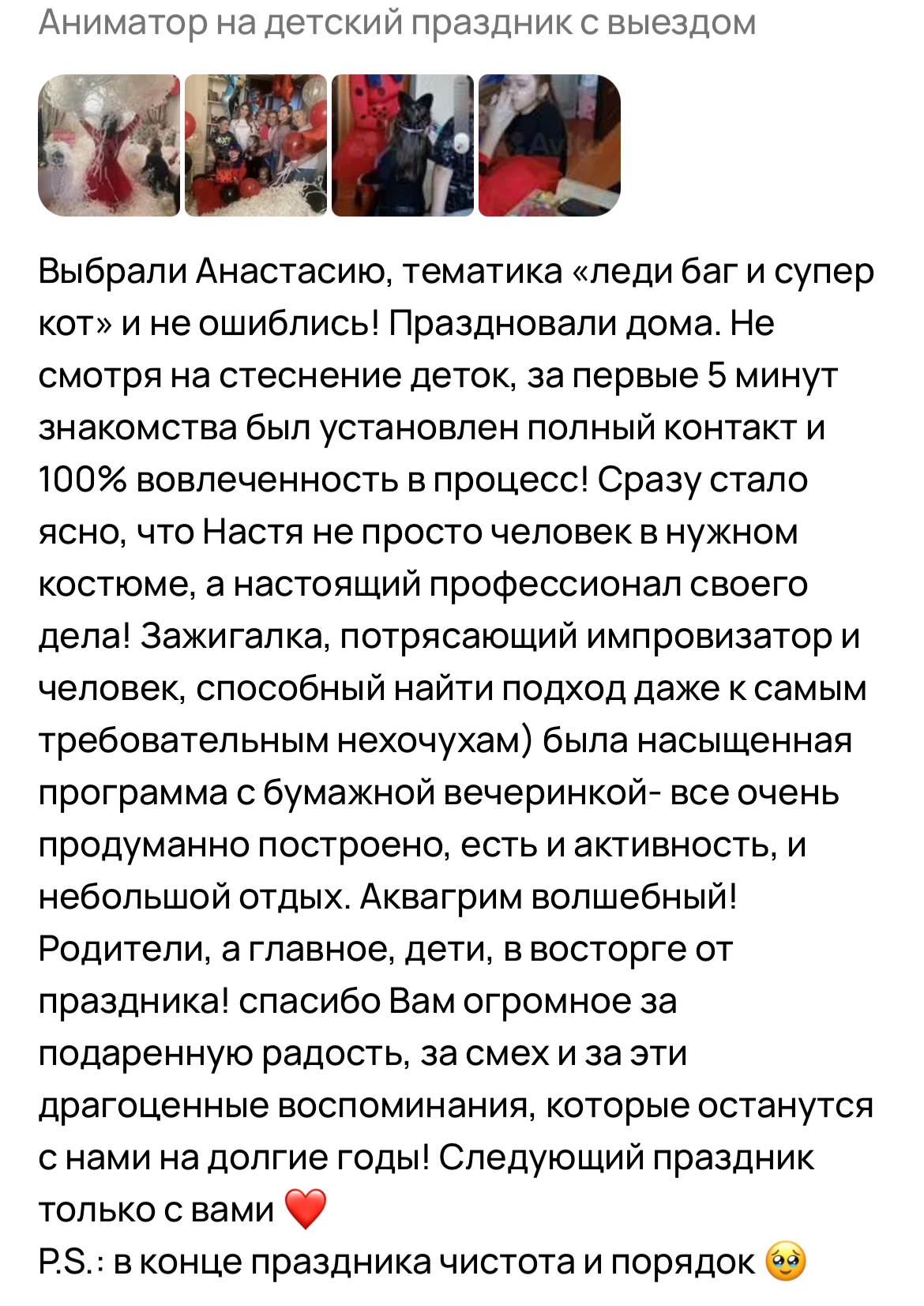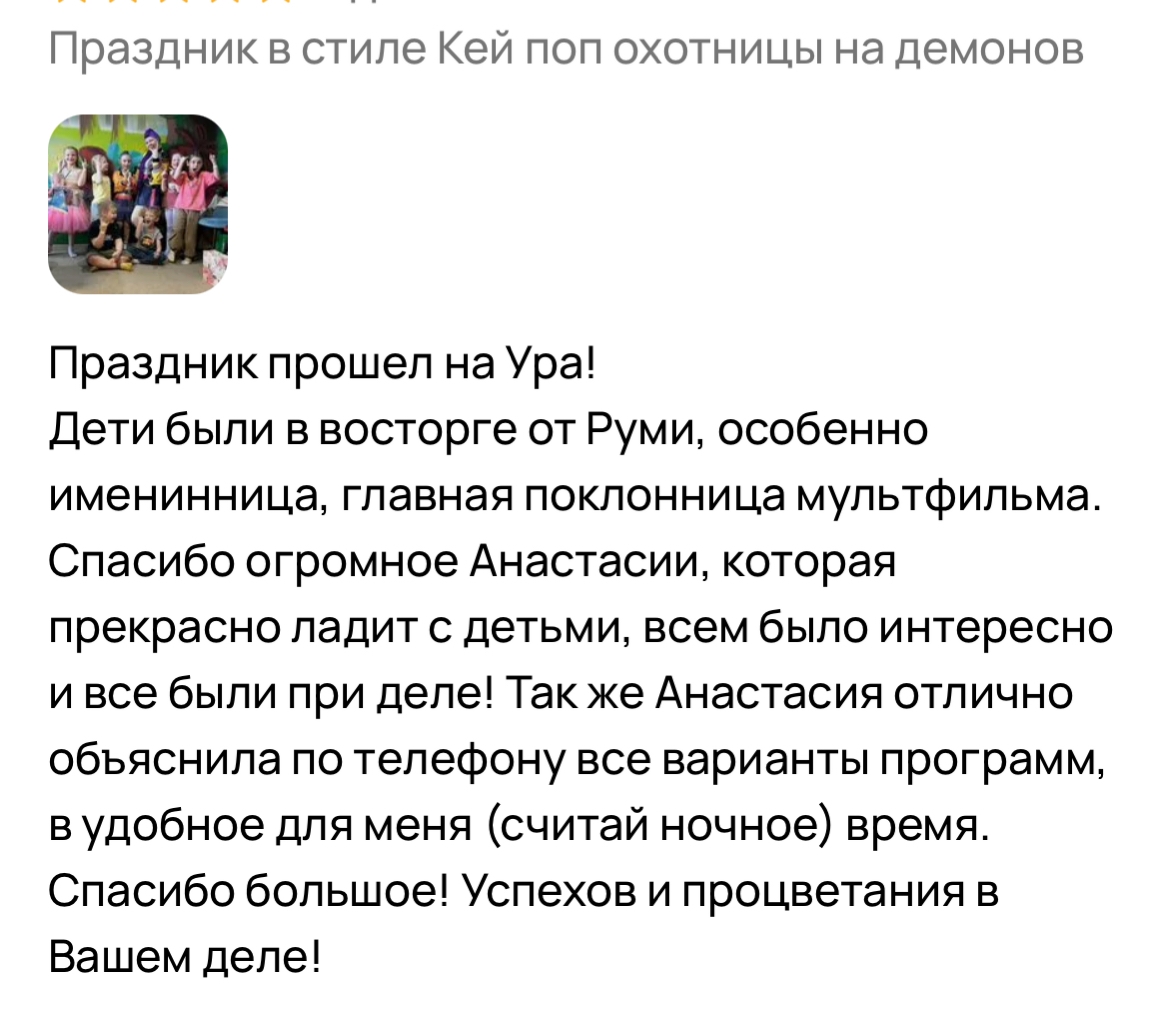 С 2017 года наша команда профессионалов создает незабываемые детские праздники. Мы разрабатываем программы, которые удерживают внимание детей до самого конца, а вы можете спокойно отдыхать и наслаждаться временем с друзьями. Яркие костюмы, уникальный тематический реквизит и тщательная подготовка заранее гарантируют, что праздник запомнится надолго и пройдет безупречно!